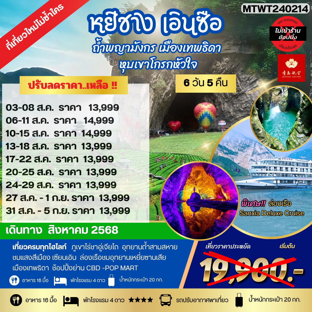 ทัวร์จีน จางเจียเจี้ย ฝูหรงเจิ้น ประตูสวรรค์ - รวมค่ากระเช้าเทียนเหมินซาน 6วัน 5คืน (QW)
